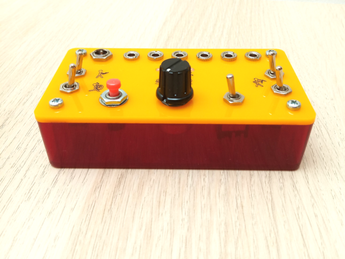 The Tapbum is a monophonic percussion synth which is powered by 9-12V DC and provides plenty of percussive electronic sounds to jam along to. It creates sounds ranging from sharp metallic glitches to soft rounded tones – with an adjustable 4-step sequencer to create on-beat bleeps as well as wonky polyrhythms. There’s a choice of kick drum, woodblock and noise sounds to choose from – with 3 inputs and 3 outputs along the top of the unit, 2 audio outs, 2 CV inputs and clock in /out.